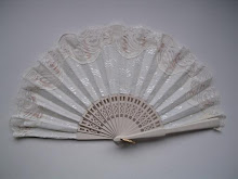 Abanico madera y tela pintado a mano dos caras 23 ctms